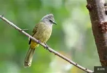 黄绿鹎,小型鸟类,体长19-22厘米。额至头顶暗褐具灰色羽缘,眼先黑色,其上面有一粗著的白纹从鼻后至眼,在黑色的头部极为醒目。上体橄榄绿褐色。颏、喉淡灰色或灰白色,胸灰褐色具橄榄黄色羽缘,…全部>>