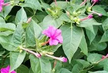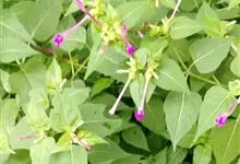 即紫茉莉,英文名:Four-o'clock,Marvel of Peru,为紫茉莉科、紫茉莉属多年生草本植物,一年生栽培。株高50~80cm。根粗壮,茎多分枝而散生。叶对生,卵形或心脏形。花数朵簇生…全部>>