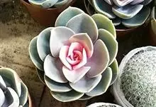 紫珍珠是景天科石莲花属的多年生肉质草本植物。植株中小型;叶片肉质,匙形,呈莲座状紧密排列;叶片粉紫色,叶缘呈粉白色,光照充足时颜色亮丽,不足时叶色会呈现深绿色或灰绿色,叶面光滑,被轻微白粉,…全部>>