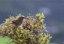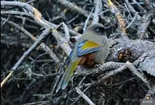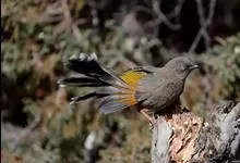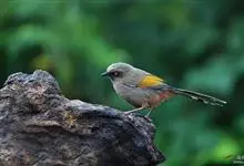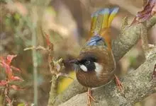 橙翅噪鹛:是噪鹛科、彩翼噪鹛属的中型鸟类,体长22-25厘米。头顶深葡萄灰色或沙褐色。上体灰橄榄褐色,外侧飞羽外翈蓝灰色、基部橙黄色,中央尾羽灰褐色,外侧尾羽外翈绿色而缘以橙黄色并具白色端斑。…全部>>