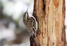 旋木雀是旋木雀科旋木雀属的一种动物。小型鸟类,体长12~15厘米,平均重10克。嘴长而下曲,上体棕褐色具白色纵纹,腰和尾上覆羽红棕色,尾黑褐色,外翈羽缘淡棕色,翅黑褐色,翅上覆羽羽端棕白色,…全部>>