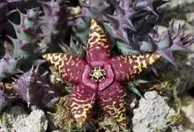 豹皮花 L.C.Leach)是马利筋亚科豹皮花属植物。肉质植物,茎亮绿色,几株簇生在一起,高约10厘米,状似仙人掌,四棱,棱稍钝,棱具粗厚软刺,光滑,绿色。无叶。…全部>>