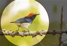 红胸啄花鸟:体重5-10克,体长60-92毫米。体形纤小。雄鸟上体呈辉亮的金属绿色;下体棕黄,胸部具一朱红色块斑,极易与其他啄花鸟区别。雌鸟上体呈橄榄绿,下体棕黄色。虹膜褐色,嘴褐黑色或角灰色,…全部>>