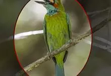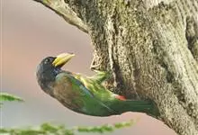 绿拟啄木鸟为鴷形目,须科,拟啄木属的一种。形较大拟啄木鸟略小,体长约260mm。头、颈及胸浅褐而具淡黄白色条纹;喉几为淡黄白色;身体余部草绿色。虹膜棕褐色,眼周裸露部黄色;嘴峰角黄色;跗跖和趾角黄…全部>>