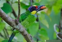 金喉拟啄木鸟,是须鴷科、拟啄木鸟属的鸟类。金喉拟啄木鸟为小型鸟类,体长19-24厘米。额深红色,头顶金黄色,后枕具一大块深红色斑,耳羽和头侧银灰色,上体草绿色,颏和上喉金黄色,下喉淡银灰色,…全部>>