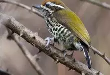 斑姬啄木鸟是鴷形目啄木鸟科姬啄木鸟属鸟类,又叫姬啄木鸟、小啄木鸟。体长9-10厘米。嘴尖而略粗壮,灰黑色;额棕色,向颈后逐渐过渡至橄榄绿色;眉纹白色,过眼纹黑褐色,其下有一白纹,…全部>>