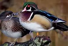 林鸳鸯是北美产颜色艳丽的小型树栖鸟。营巢于离地面15米的树洞中。体长约48厘米,雄雌均具独特羽冠。雄鸟羽冠有两条纵列的白色条纹,雌鸟羽毛上有白色眼环,体羽为煤灰色,幼雏于出壳的次日即可随雌鸟离巢,能…全部>>