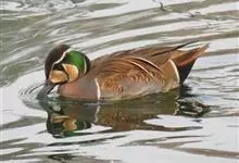 栗树鸭体长37-42厘米,体重400-600克,是中等体型的红褐色鸭。头顶深褐,头及颈皮黄色,背褐而具棕色扇贝形纹,下体红褐。左右翅各有1枚形状特殊的飞羽,飞行中与空气摩擦能发出轻而尖的啸声。…全部>>