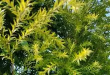黄金串钱柳是桃金娘科白千层属常绿乔木植物。其树干暗灰色,树皮不易剥落;具油腺点,香味浓郁;叶革质互生,披针形或狭长圆形,两端尖;叶色全年金黄至鹅黄色;枝条细长,柔软且韧性好;穗状花序生于枝顶;花白色,…全部>>