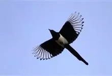 喜鹊:是鸦科、鹊属的一种鸟类。共有11个亚种。体长40-50厘米,雌雄羽色相似,头、颈、背至尾均为黑色,并自前往后分别呈现紫色、绿蓝色、绿色等光泽,双翅黑色而在翼肩有一大形白斑,尾远较翅长,呈楔形,…全部>>