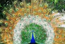 绿孔雀是鸡形目雉科孔雀属鸟类,别名:孔雀、越鸟、爪哇绿孔雀。雄性绿孔雀全身呈翠绿色,并反紫铜色光。头顶有一簇直立的冠羽,尾上复羽发达的约长1米,每羽端部有一个蓝色和翠绿色镶嵌的眼状斑,…全部>>