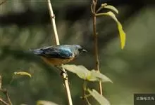 黄腹啄花鸟:体重11-16克,体长104-117毫米。是一种体型大,下腹部为艳黄色的啄花鸟,雄鸟特征为头黑色,喉部有白色纵斑、喉侧及上体成对比,两翅和尾黑色,外侧尾羽内翈具白色斑块。其余下体淡黄色。…全部>>