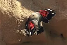 红翅旋壁雀:体重15-23克,体长120-178毫米。是一种体型略小的鸟类。尾短而嘴长,翼具醒目的绯红色斑纹。飞羽黑色,外侧尾羽羽端白色显著,初级飞羽两排白色点斑飞行时成带状。繁殖期雄鸟脸及喉黑色,…全部>>