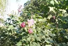 木芙蓉,锦葵科木槿属落叶灌木或小乔木。小枝上有细绒毛;叶片为卵状心形,托叶为披针形,常早落;花单生,花萼为钟形,花冠初为白色或淡红色,后逐渐变为深红色;果实为扁球形,有淡黄色的毛附着。花期8到10月。…全部>>