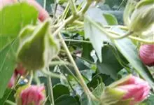 木芙蓉,锦葵科木槿属落叶灌木或小乔木。小枝上有细绒毛;叶片为卵状心形,托叶为披针形,常早落;花单生,花萼为钟形,花冠初为白色或淡红色,后逐渐变为深红色;果实为扁球形,有淡黄色的毛附着。花期8到10月。…全部>>