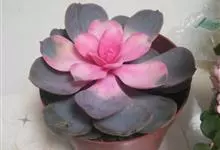紫珍珠是景天科石莲花属的多年生肉质草本植物。植株中小型;叶片肉质,匙形,呈莲座状紧密排列;叶片粉紫色,叶缘呈粉白色,光照充足时颜色亮丽,不足时叶色会呈现深绿色或灰绿色,叶面光滑,被轻微白粉,…全部>>
