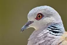 珠颈斑鸠,别名花斑鸠、珍珠鸠、花脖斑鸠、鸪鹪,是鸠鸽科副斑鸠属鸟类。体型中等,体长27~34cm,体重120~205g,雌鸟和雄鸟羽色相似,但雌鸟不如雄鸟羽色亮泽。珠颈斑鸠前额至头顶羽色稍淡,…全部>>