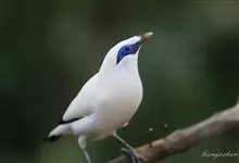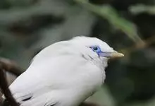长冠八哥:是一种大型椋鸟,体长约25厘米,雌雄相似,外形俊朗,羽冠发达,眼睛四周和面部裸出,裸露部分为蓝色,全身羽毛纯白色,尾部和翼端的边缘呈黑色,脚灰色。全身白色,具较长冠羽,…全部>>