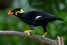 金冠树八哥为椋鸟科树八哥属的鸟类。体长约23厘米,闪辉黑色。特征为具翼斑及颏黄色,脸颊裸露皮肤粉黄色。分布于印度、缅甸、泰国以及中国大陆的云南、广东等地。…全部>>