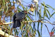 噪鹃是鹃形目杜鹃科噪鹃属鸟类,又名栽秧雀、哥好雀。雄鸟通体乌黑泛幽蓝色金属光泽,下体泛蓝绿色;虹膜血红色,啄淡土黄色,基部较暗,脚蓝灰色。雌鸟上体、翼和尾为深褐色,…全部>>