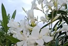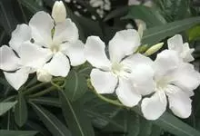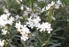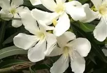 白花夹竹桃是夹竹桃科、夹竹桃属植物夹竹桃的栽培品种。常绿直立大灌木,枝条灰绿色;嫩枝条具稜,被微毛,老时毛脱落。叶3-4枚轮生,下枝为对生,叶面深绿,叶背浅绿色;侧脉纤细平行与中脉成直角;叶柄扁平,…全部>>