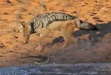 亚洲胡狼是金豺的指名亚种,体型中等、匀称,四肢修长,趾行性,利于快速奔跑。头腭尖形,颜面部长,鼻端突出,耳尖且直立,嗅觉灵敏,听觉发达。犬齿及裂齿发达;上臼齿具明显齿尖,…全部>>