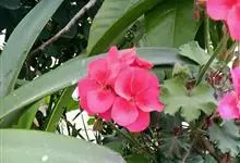 夹竹桃,又名红花夹竹桃、欧洲夹竹桃,是夹竹桃科夹竹桃属的一种常绿直立大灌木,枝条灰绿色,含水液。叶披针形,3叶轮生。聚伞花序顶生,花冠粉红至深红色,花冠漏斗状,有特殊香味。蓇葖果,圆柱形。种子长圆形,…全部>>