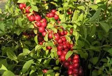 欧洲甜樱桃 L.),蔷薇科樱属落叶乔木,高可达2.5米,树皮黑褐色;叶片倒卵状椭圆形或椭圆卵形;花序伞形,花叶同开,花瓣白色,倒卵圆形;果实为核果,近球形或卵球形,红色至紫黑色;花期4-5月,…全部>>