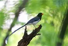 红嘴蓝鹊,别名山鹊、长尾鹊,是鸦科蓝鹊属的一种观赏性较强的大型鸣禽。该物种为体长54~65cm,头、颈、喉和胸黑色,头顶至后颈有一块白色至淡蓝白色或紫灰色块斑,其余上体紫蓝灰色或淡蓝灰褐色。尾长呈凸状,…全部>>