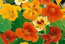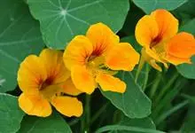 旱金莲是旱金莲科旱金莲属蔓生一年生草本植物。叶互生,叶柄向上扭曲,盾状,叶圆形,具波状浅缺刻,下面疏被毛或有乳点;花黄、紫、桔红或杂色,花托杯状,花瓣为圆形,边缘具缺刻;果实为扁球形;花果期6-10月,…全部>>