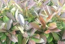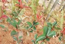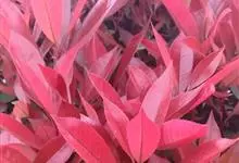 红叶石楠 是蔷薇科,石楠属杂交种,为常绿小乔木或灌木,乔木高可达5米、灌木高可达2米。叶片革质,长圆形至倒卵状、披针形,叶端渐尖,叶基楔形,叶缘有带腺的锯齿,花多而密,复伞房花序,花白色,梨果黄红色,…全部>>