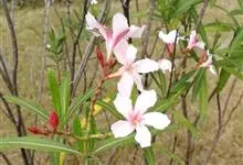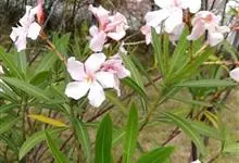 夹竹桃,又名红花夹竹桃、欧洲夹竹桃,是夹竹桃科夹竹桃属的一种常绿直立大灌木,枝条灰绿色,含水液。叶披针形,3叶轮生。聚伞花序顶生,花冠粉红至深红色,花冠漏斗状,有特殊香味。蓇葖果,圆柱形。种子长圆形,…全部>>