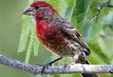 酒红朱雀小型鸟类,体长13~15厘米。雄鸟通体深红色,头部深朱红或棕红色,下背和腰玫瑰红色,眉纹粉红色而具丝绢光泽。两翅和尾黑褐或灰褐色、具暗红色狭缘,内侧两枚三级飞羽具淡粉红色先端。…全部>>