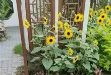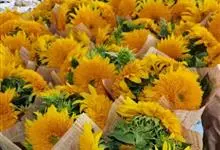 向日葵:是桔梗目、菊科、向日葵属的植物。因花序随太阳转动而得名。是一年生高大草本植物。茎粗壮,高1-3米,不分枝或有时上部分枝,被白色粗硬毛。叶互生,卵状心形或卵形,顶端急尖或渐尖,基生3出脉,…全部>>