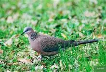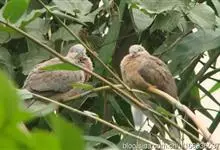 珠颈斑鸠,别名花斑鸠、珍珠鸠、花脖斑鸠、鸪鹪,是鸠鸽科副斑鸠属鸟类。体型中等,体长27~34cm,体重120~205g,雌鸟和雄鸟羽色相似,但雌鸟不如雄鸟羽色亮泽。珠颈斑鸠前额至头顶羽色稍淡,…全部>>
