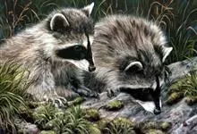 浣熊:食肉目、浣熊科的一种哺乳动物,成年体长40-65厘米,尾长20-40厘米,体重4-10千克,雄性稍大于雌性。体型较小。面部有黑色眼斑,形象滑稽,绰号“蒙面大盗”;尾部有5到7条黑白相间的环纹。…全部>>