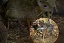 鼷鹿,别名小鼷鹿,共38个亚种。体形略比野兔大,体重1.3~2.0kg,体长420~630mm,肩高约200mm,是仅次于蹄兔目成员最小的有蹄类动物,也是鼷鹿科种体型最小的一种。面部尖长,无角,…全部>>