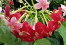 使君子 Jongkind)是使君子科、使君子属攀援灌木,叶对生,椭圆形,两面均被灰白色柔毛。穗状花序,倒挂下垂。花期夏秋。果有五棱,熟时黑色,种子白色。分布于印度、缅甸、菲律宾和中国。喜温润,深根性,…全部>>