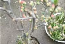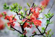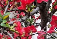贴梗海棠 Nakai)是蔷薇科、木瓜海棠属植物。落叶灌木,高达2米,枝条直立开展,有刺。叶片卵形至椭圆形,稀长椭圆形,长3-9厘米,宽1.5-5厘米。花先叶开放,3-5朵簇生于二年生老枝上。…全部>>