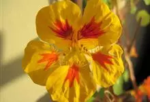 旱金莲是旱金莲科旱金莲属蔓生一年生草本植物。叶互生,叶柄向上扭曲,盾状,叶圆形,具波状浅缺刻,下面疏被毛或有乳点;花黄、紫、桔红或杂色,花托杯状,花瓣为圆形,边缘具缺刻;果实为扁球形;花果期6-10月,…全部>>