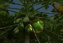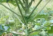 番木瓜,番木瓜科番木瓜属的常绿软木质小乔木,高达10米,具有乳汁;茎不分枝或有时于损伤处分枝;叶大且聚生于茎顶,近似盾形,叶柄中空;花单性或两性,有些品种雄株偶尔生两性花或雌花,…全部>>