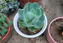 红缘莲花掌属蔷薇目、景天科植物,原产大西洋的加那利群岛。质厚,蓝绿色,被白霜,叶缘红褐色。聚伞花序,花浅黄色,有时带红晕。叶形叶色较美,有一定的观赏价值,多盆栽用于点缀室内;可放置于电视、电脑旁,…全部>>