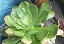 红缘莲花掌属蔷薇目、景天科植物,原产大西洋的加那利群岛。质厚,蓝绿色,被白霜,叶缘红褐色。聚伞花序,花浅黄色,有时带红晕。叶形叶色较美,有一定的观赏价值,多盆栽用于点缀室内;可放置于电视、电脑旁,…全部>>