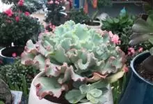 女王花笠,又名扇贝石莲花、女王花舞笠,是景天科拟石莲花属的多肉植物。由美国加利福尼亚州的育种师Dick Wright于1964年培育。特征是呈大波浪状褶皱的红色叶缘和气质高贵的粉紫色调。…全部>>