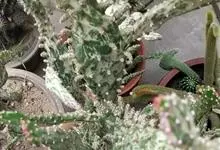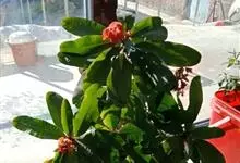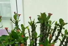 虎刺梅:别称铁海棠,是蔓生灌木植物。茎多分枝,长60-100厘米,直径5-10毫米,具纵棱,密生硬而尖的锥状刺,刺长1-1.5厘米,直径0.5-1.0 毫米,常呈3-5列排列于棱脊上,呈旋转。叶互生…全部>>