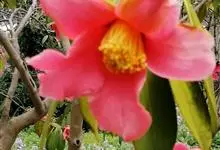 滇山茶:灌木至小乔木,有时高达15米,嫩枝无毛。叶阔椭圆形,上面干后深绿色,发亮,下面深褐色,无毛,侧脉6-7对,边缘有细锯齿。花顶生,红色,直径10厘米,无柄;苞片及萼片10-11片,花瓣红色,…全部>>