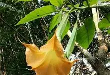 木本曼陀罗 Lagerh.)是茄科、木曼陀罗属小乔木,高2米余。茎粗壮,上部分枝。叶卵状披针形、矩圆形或卵形,顶端渐尖或急尖,基部不对称楔形或宽楔形,全缘、微波状或有不规则缺刻状齿,花单生,俯垂,…全部>>