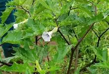 毛曼陀罗是茄科曼陀罗属一年生直立草本或半灌木状植物。株高1-2米,全体密被细腺毛和短柔毛。茎下部灰白色,分枝灰绿色或微带紫色;叶片广卵形,基部不对称近圆形,…全部>>