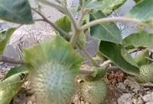 曼陀罗,茄科曼陀罗属一年生大型草本植物,全株光滑。有臭气;叶呈广卯形,边缘具不规则波状浅齿裂;花单生于枝杖间或叶腋,直立,有短梗;花萼是筒状裂片三角形,颜色为白色或淡紫色;果实为蒴果卵状,…全部>>