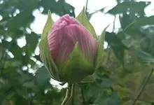 木芙蓉,锦葵科木槿属落叶灌木或小乔木。小枝上有细绒毛;叶片为卵状心形,托叶为披针形,常早落;花单生,花萼为钟形,花冠初为白色或淡红色,后逐渐变为深红色;果实为扁球形,有淡黄色的毛附着。花期8到10月。…全部>>